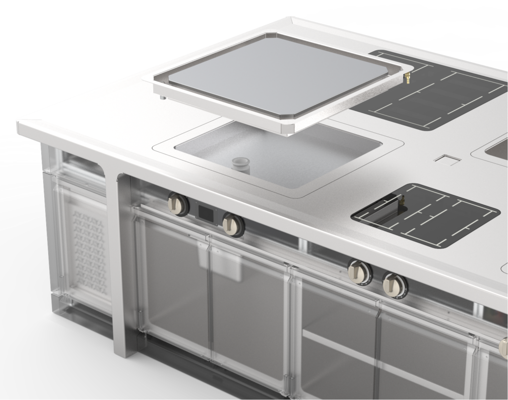 Il fry top è attualmente disponibile solo in versione drop-in, integrabile nei blocchi Ikonico e nella monoblocco Pi.